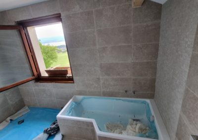 Rénovation d’une salle de bains complète avec déplacement du WC, à la place de l’ancienne douche.